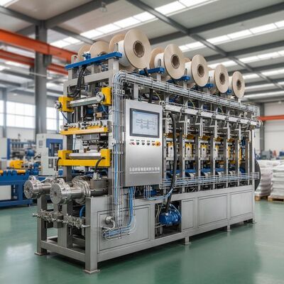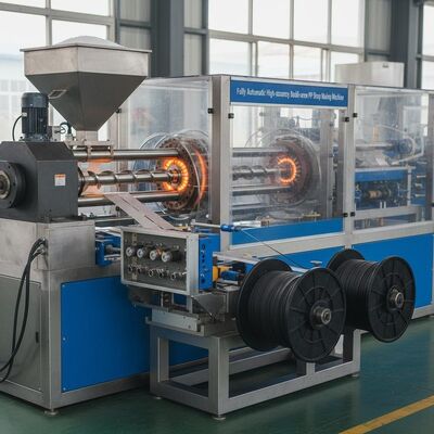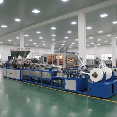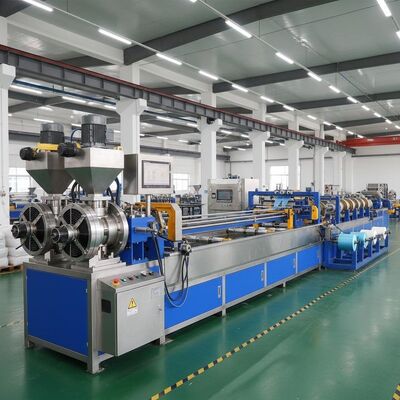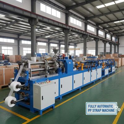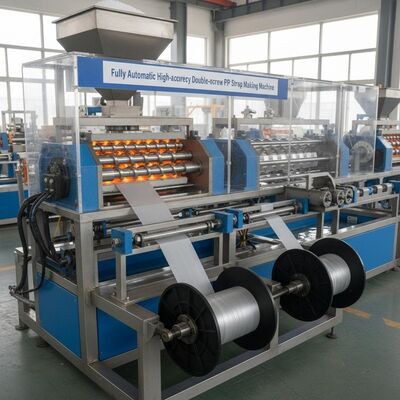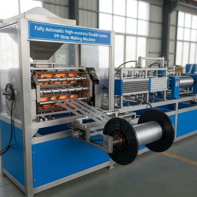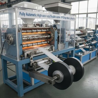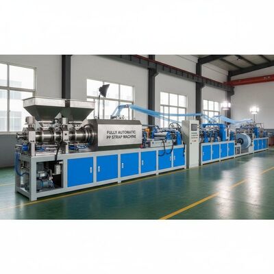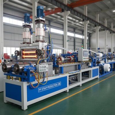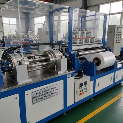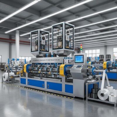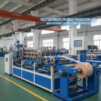Garis ekstrusi sekrup ganda berkinerja tinggi yang dirancang untuk memproduksi 4 strip tali PP dengan presisi dan efisiensi.Sistem produksi otomatis ini memastikan kualitas produk yang konsisten untuk pabrik manufaktur.